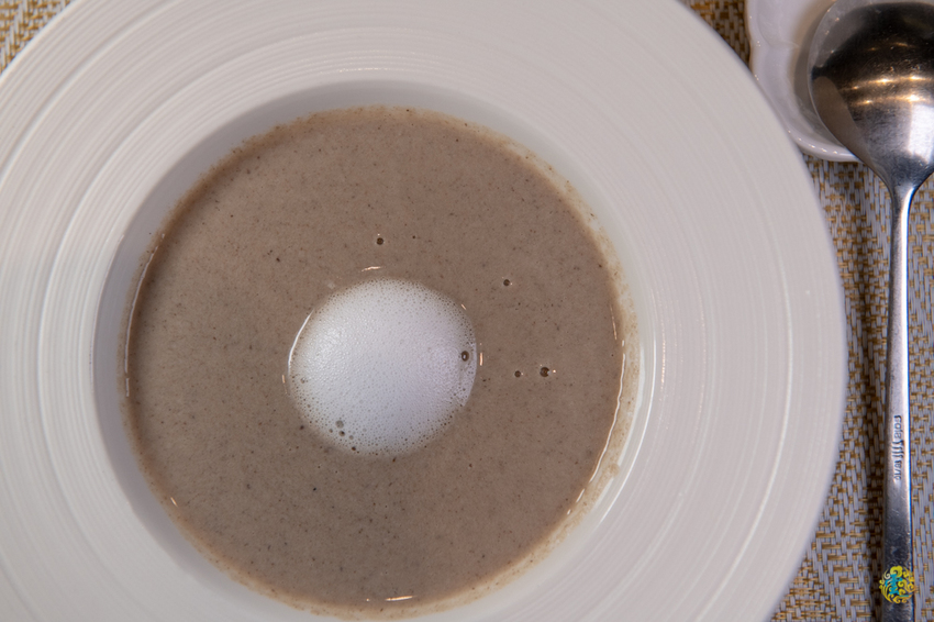 使用多種菌菇在加入適量的洋蔥慢火熬煮的蘑菇湯,清新淡雅的香氣撲鼻,上方綿密的分子泡泡入口即化,滑順輕柔的口感,味道濃郁細膩,小凌雲相當喜歡。