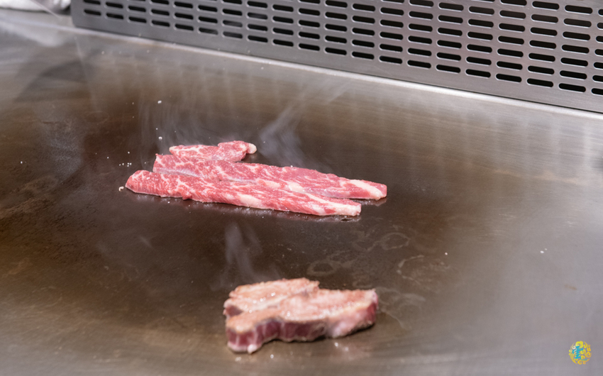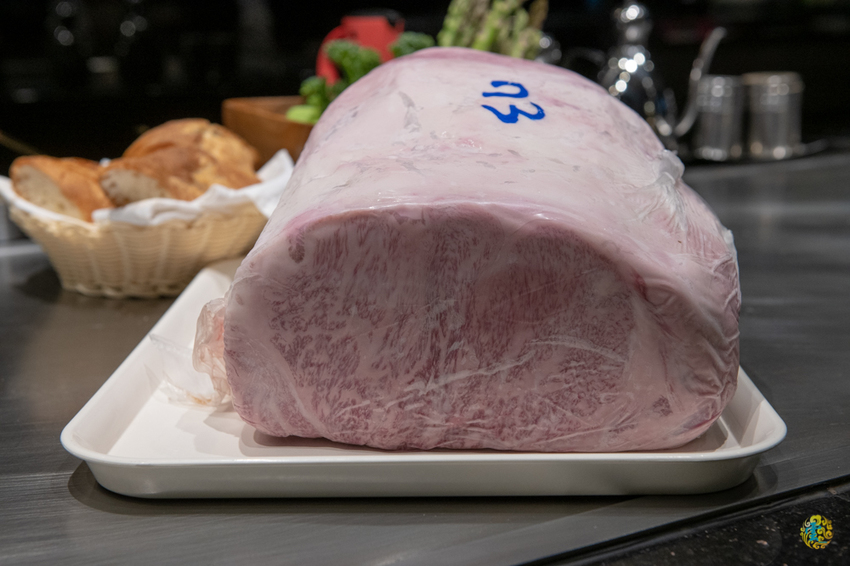 對食材品質的嚴選把關是山茶花鐵板燒最重要的堅持,Sazanka Teppanyaki秉持著『發揮食材美味』的簡單原則,將當季最好的味道,分享給前來的饕客們。主廚特別把來自日本鹿兒島,知名的黑毛和牛展示給我們看,超大塊的原肉雖然被包裹著,還是看的出來在肌肉纖維之間交雜混入了脂肪,這種霜降脂肪不只風味濃厚,口感更是一級棒。