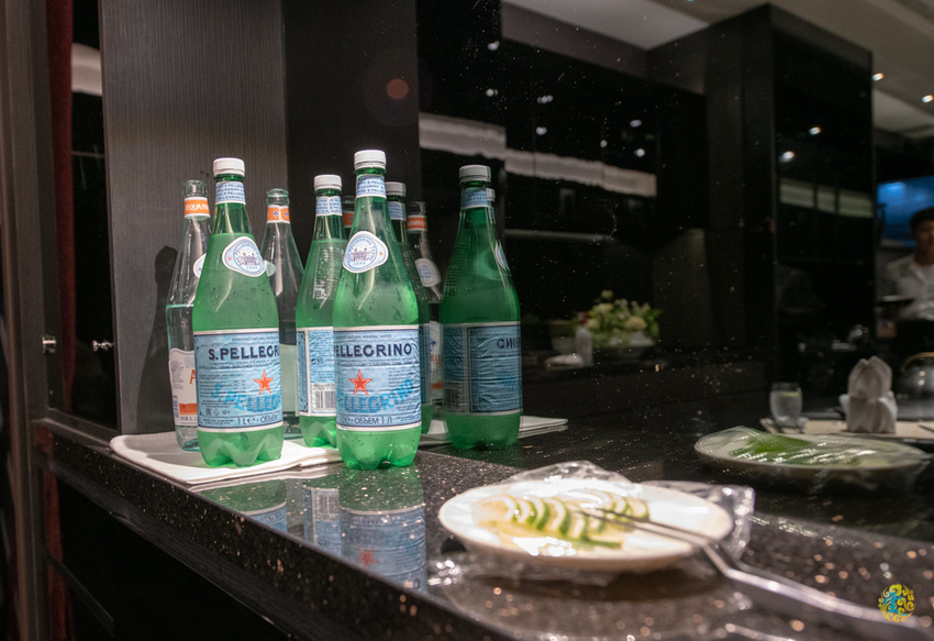 山茶花鐵板燒會收取每人100元的水資,有ACQUA PANNA普娜天然礦泉水與義大利原產的聖沛黎洛天然氣泡礦泉水可以選擇,凌雲跟女王都選擇氣泡礦泉水,小凌雲就給他天然礦泉水,服務人員的服務相當優質,在用餐期間水杯幾乎都是滿的,這水資收的名符其實。