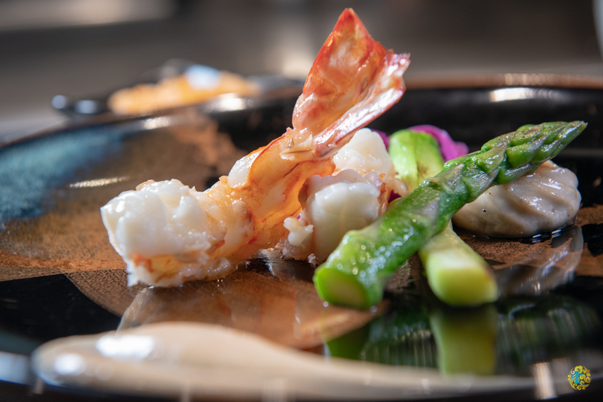 圖|每一口都讓人十分滿足。主廚特地帶我們參觀廚房裡的法國玫瑰龍蝦,每隻都活力十足精神飽滿。