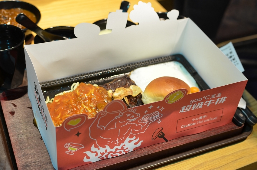 牛排鐵板還圈了一層的紙,讓客人也方便取餐不會被噴濺燙傷。