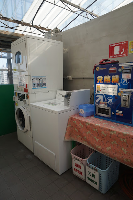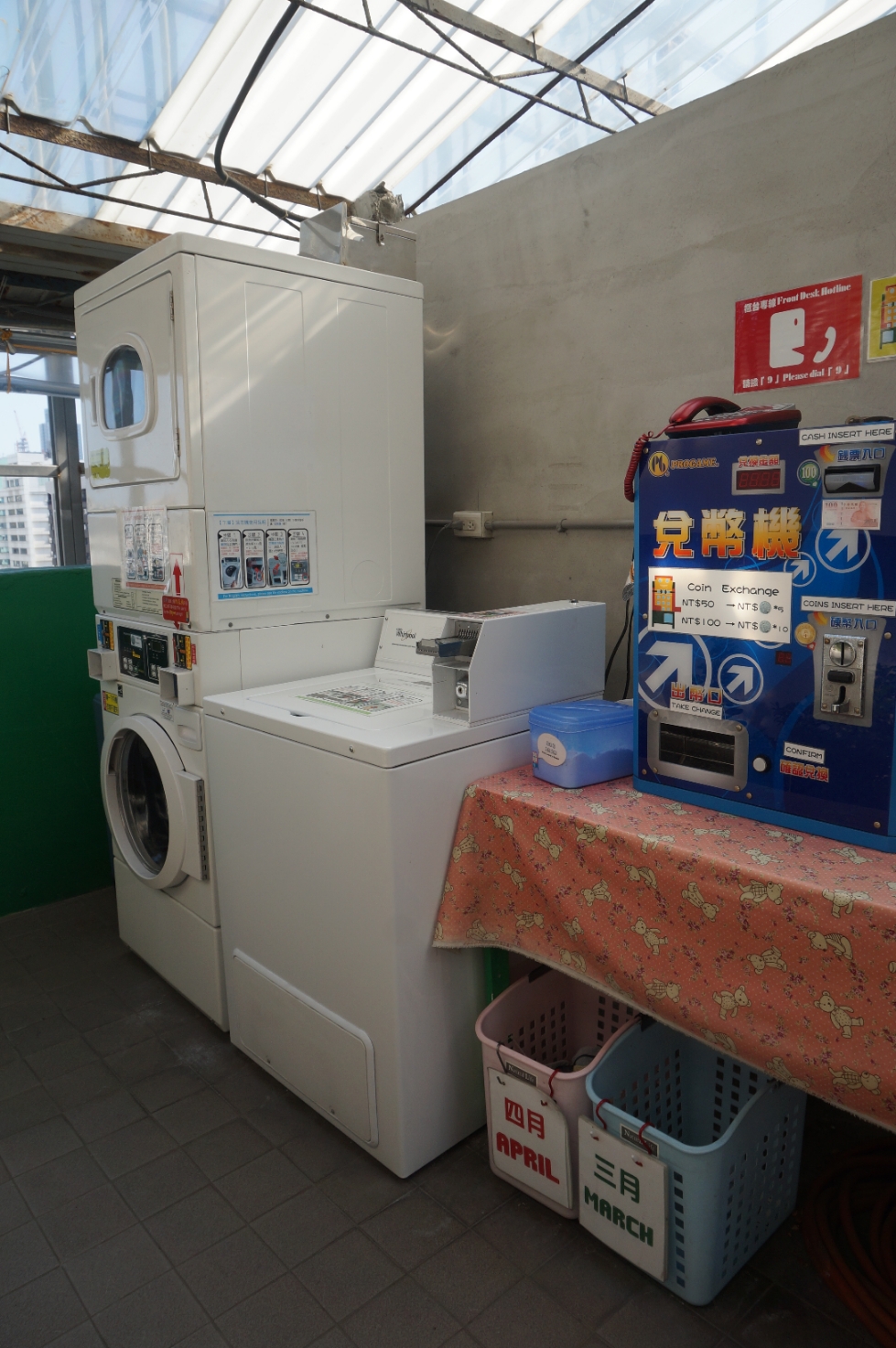 洗完澡~台灣好媳婦屎蛋媽習慣順手把衣服洗乾淨,貝殼窩港都青年旅舍也有洗衣房喔!免去台灣好媳婦屎蛋媽手洗衣服的困擾(是要講幾遍...),如果有久住的客人,有洗衣房真的很方便,洗衣房就在電梯9F後,走樓梯上頂樓!