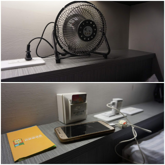 客房設施:個人插座、閱讀燈、電風扇,如果睡前還想滑滑手機、看看書也不傷眼睛。