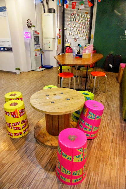 交誼廳:貝殼窩港都青年旅舍的交誼廳寬敞,色彩也很繽紛,感覺溫暖舒適,讓旅人有在自己家的溫馨感覺。