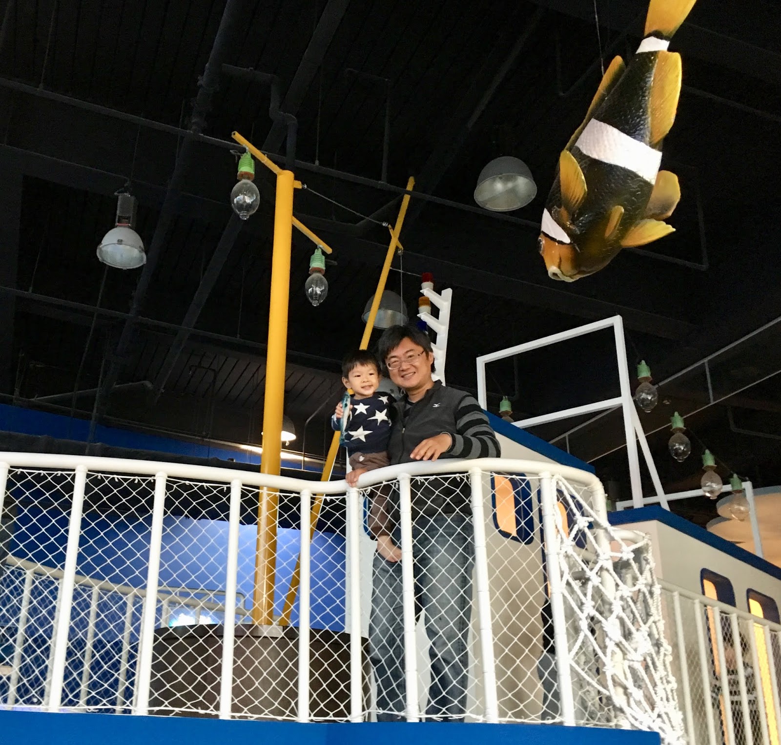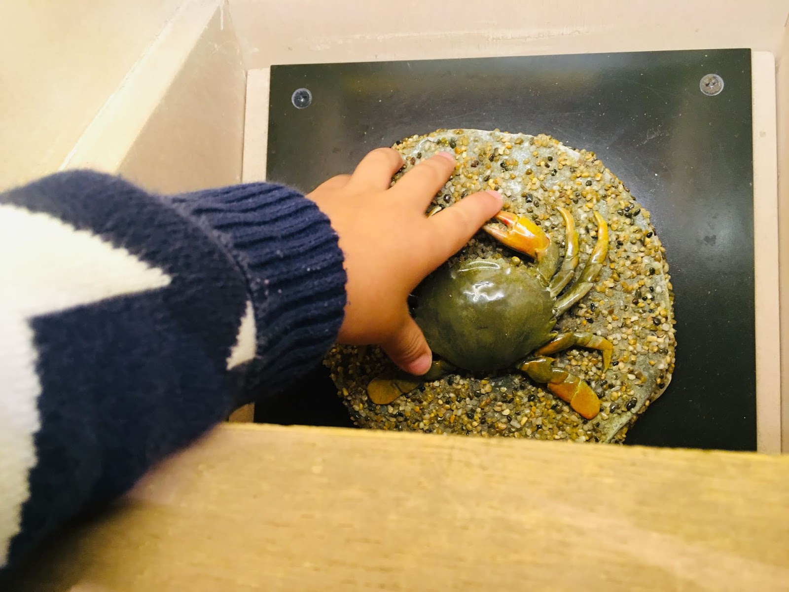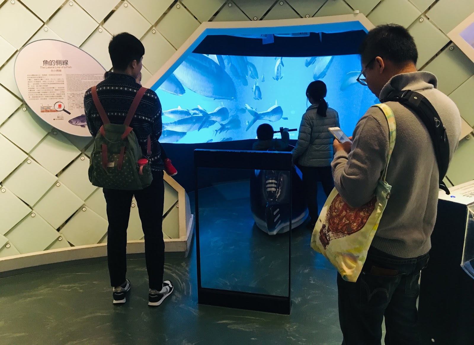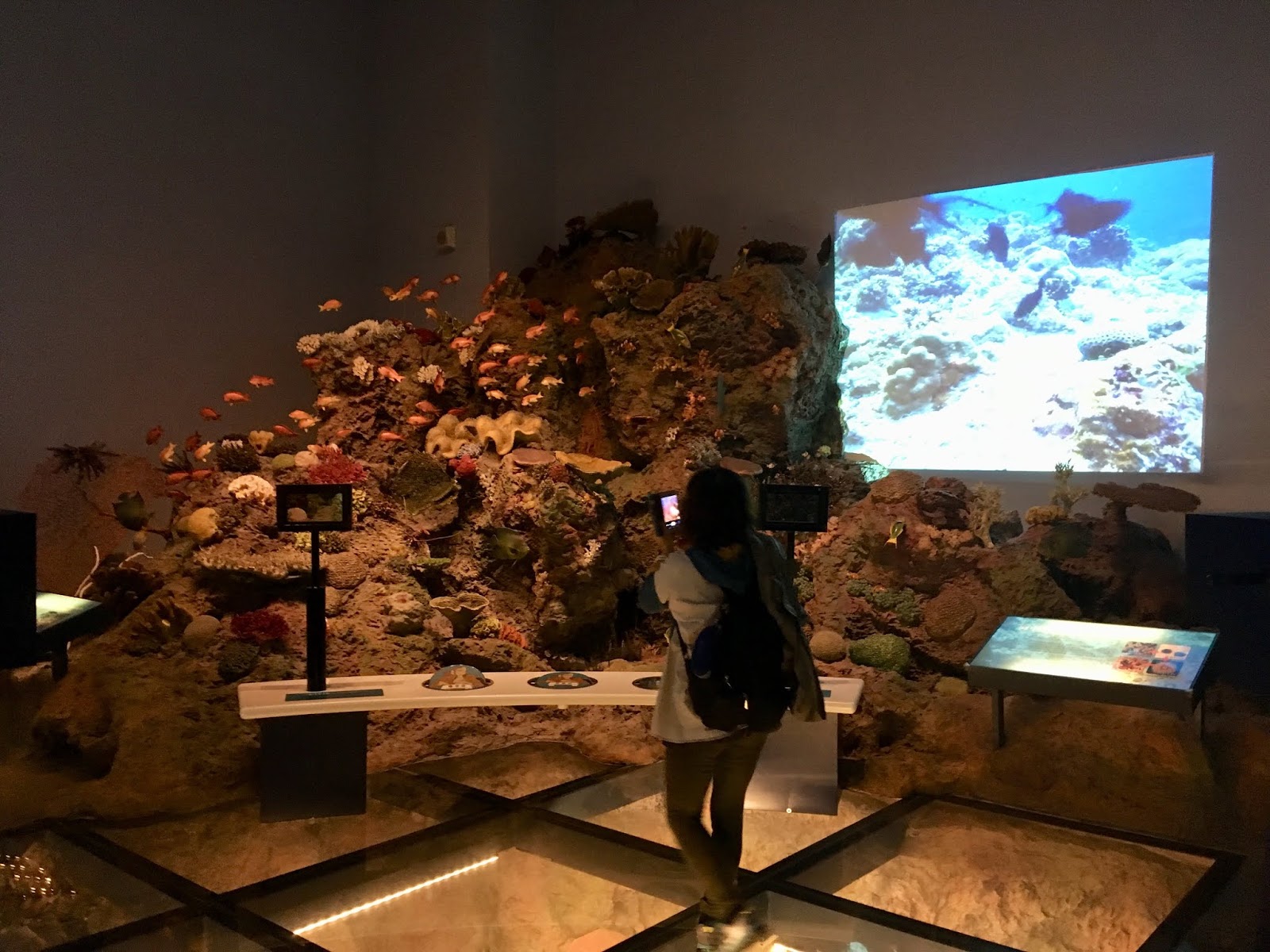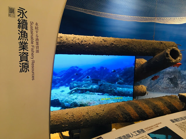 小福寶對於多元的生態環境模型感到興趣,像是潮間帶、珊瑚礁、紅樹林等,都想要認識其間的小生物,看到各種美麗的魚類更是驚異不已。孩子對自然是如此珍惜,想到他生活的未來可能充斥各種污染,就感到我們這一代有保護環境的重大責任。