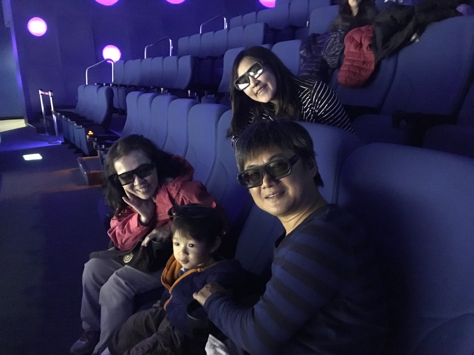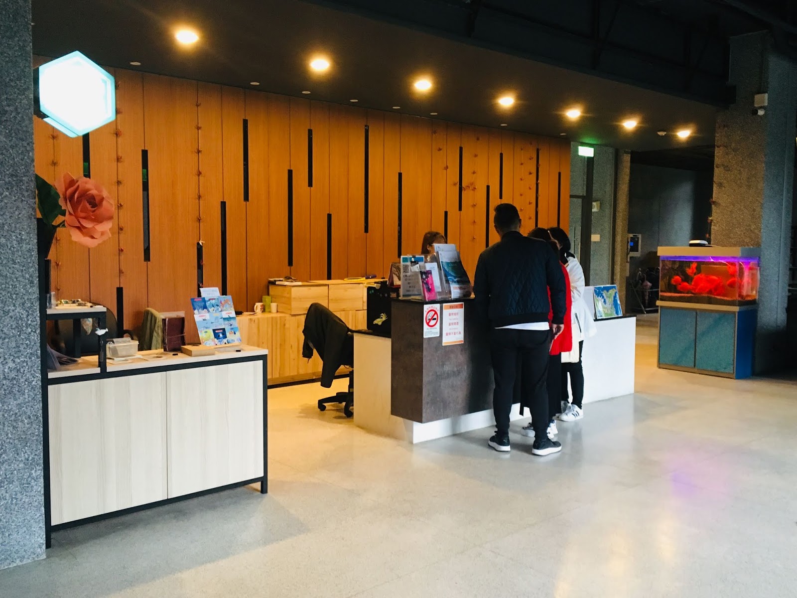 一進門,就感受到整體溫暖有質感的氛圍,真的像是旅館一樣!我們到大廳櫃檯和服務人員報到,領取門票和預訂隔天的早餐,並將行李寄放在大廳。和服務人員詳細了解自由行要注意的事項後,一行人趕赴至「海洋劇場」的11點電影場次。