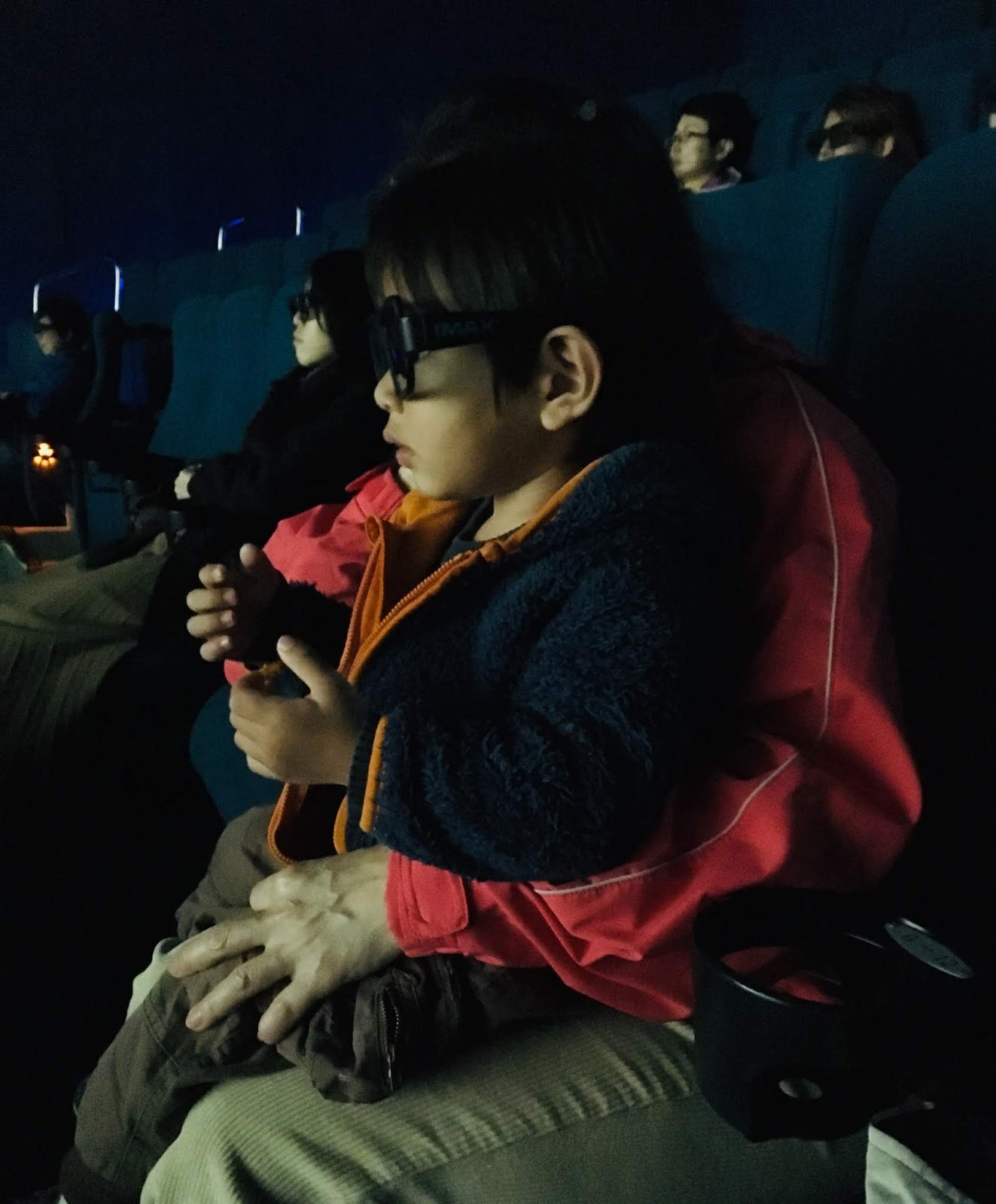 為時40分鐘的「肯亞動物王國」,剛好是學齡前孩子可專注的時間範圍,小福寶一開始因為劇場黑黑的,嚷著要出去,但電影開始後,戴著3D眼鏡看到平常認識的斑馬、獅子、大象、豹、犀牛在眼前栩栩如生,一直驚呼連連,看得很投入。
