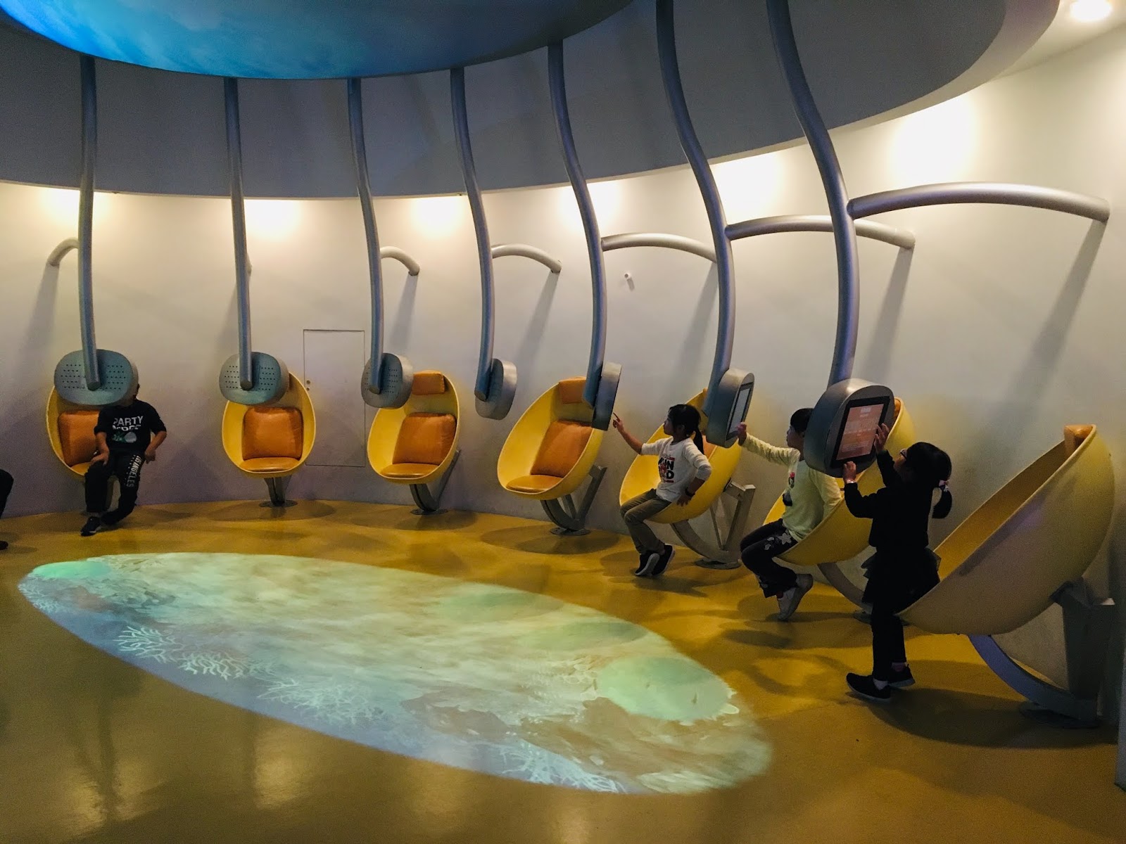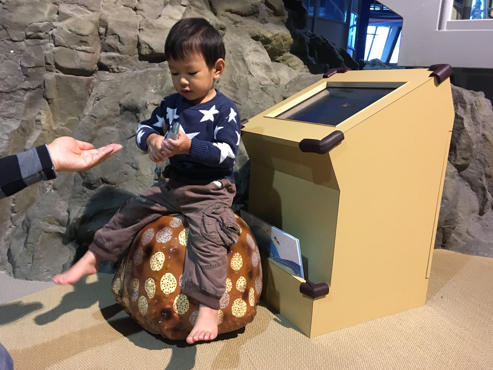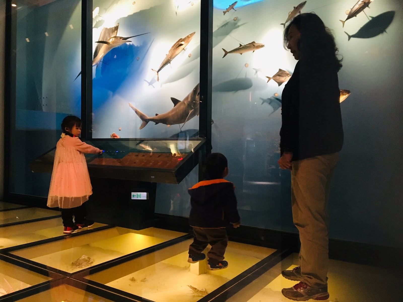 在所有行程當中,「兒童廳」是我們最喜歡的,如同海洋主題的親子館,很能引起孩子的興趣,也非常耗小孩的體力,可以玩好幾個場次。「主題館」則是以互動和體驗的方式促進學習,讓各個年齡層的人都可以學到海洋相關的知識,從小到大都可以來玩。若是加上