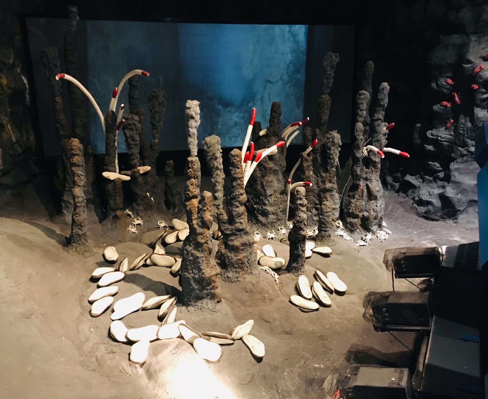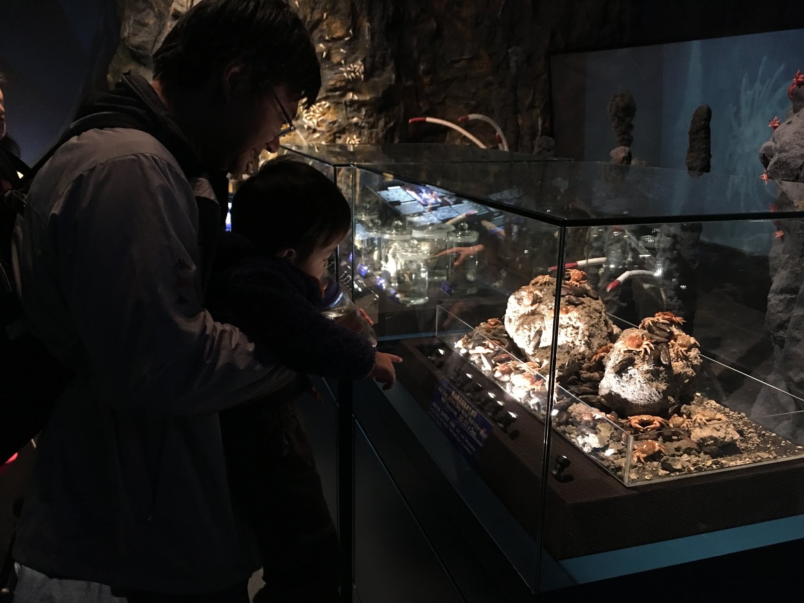 原來以為小福寶可能會覺得黑黑的有點害怕,結果他看黑暗中各種奇妙生物看得目不轉睛,我自己則是以前研究過古細菌,看到嗜高溫菌時頓時有點懷念。