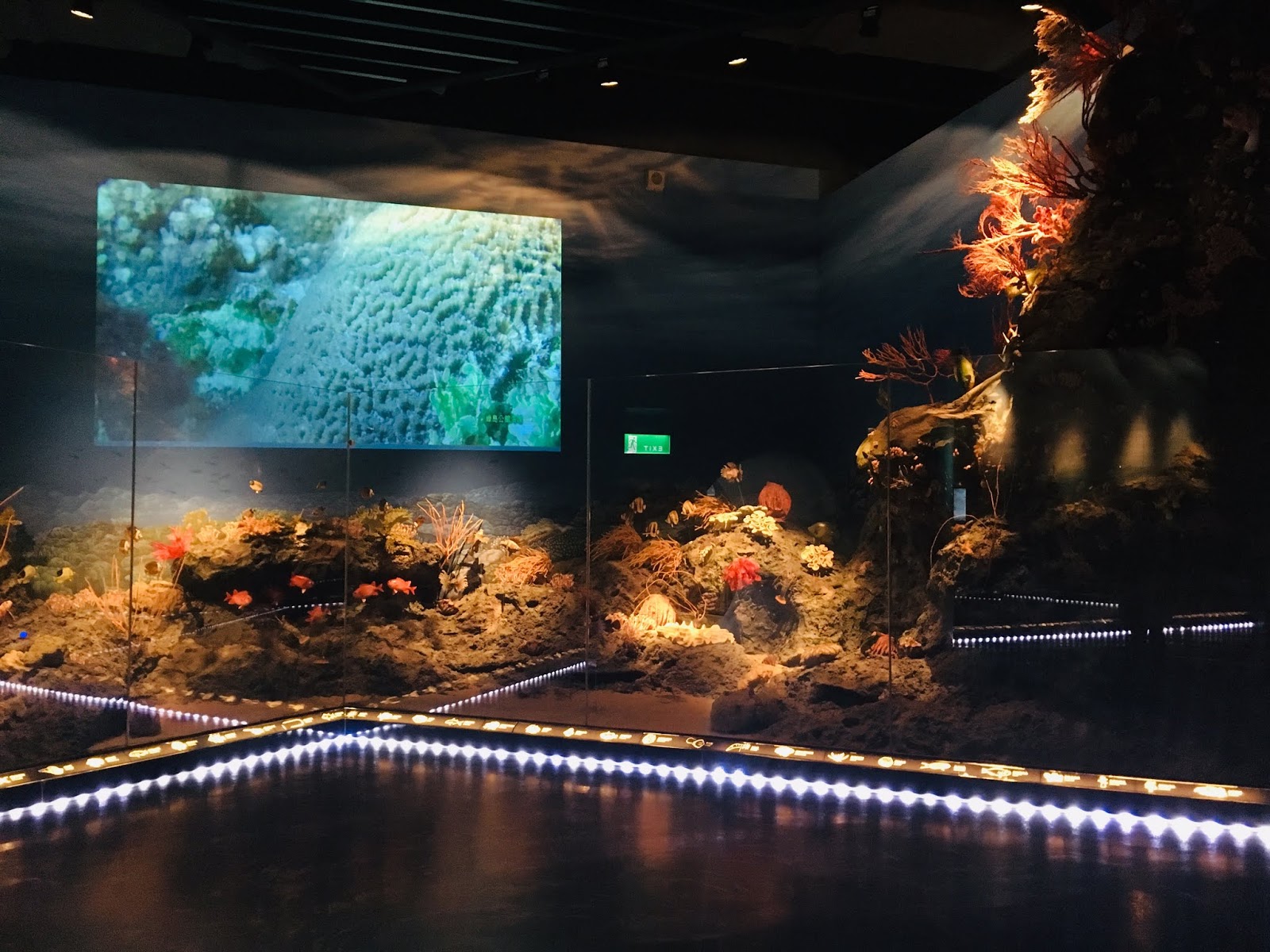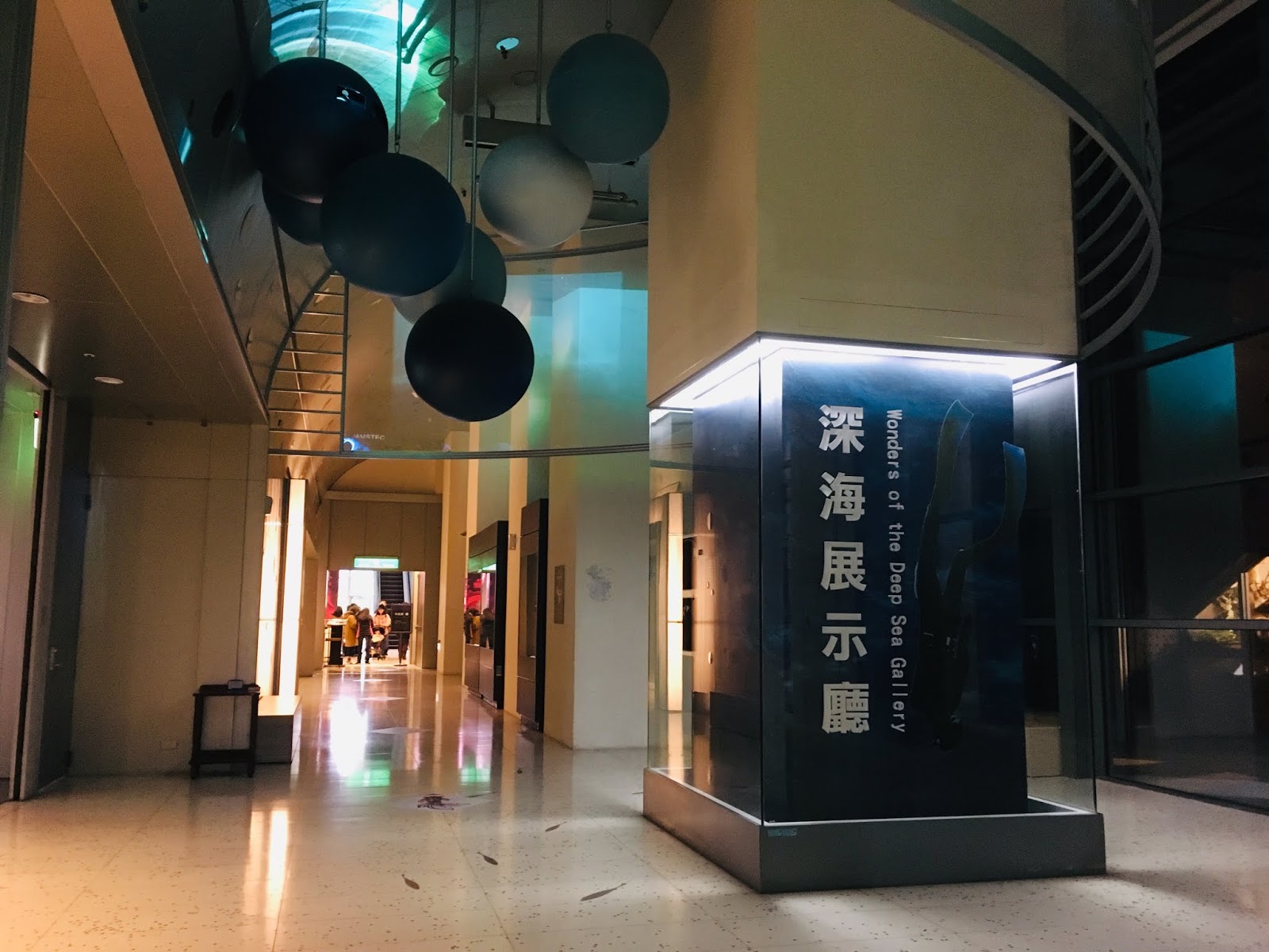 1樓的「深海展示廳」,展示了神秘的深海生態,深海生物為了適應深海的環境,發展出許多特性,像是:視力差、抗高壓等,而鯨魚死去後發展出的「鯨屍生態系」,又是一番特殊風景。
