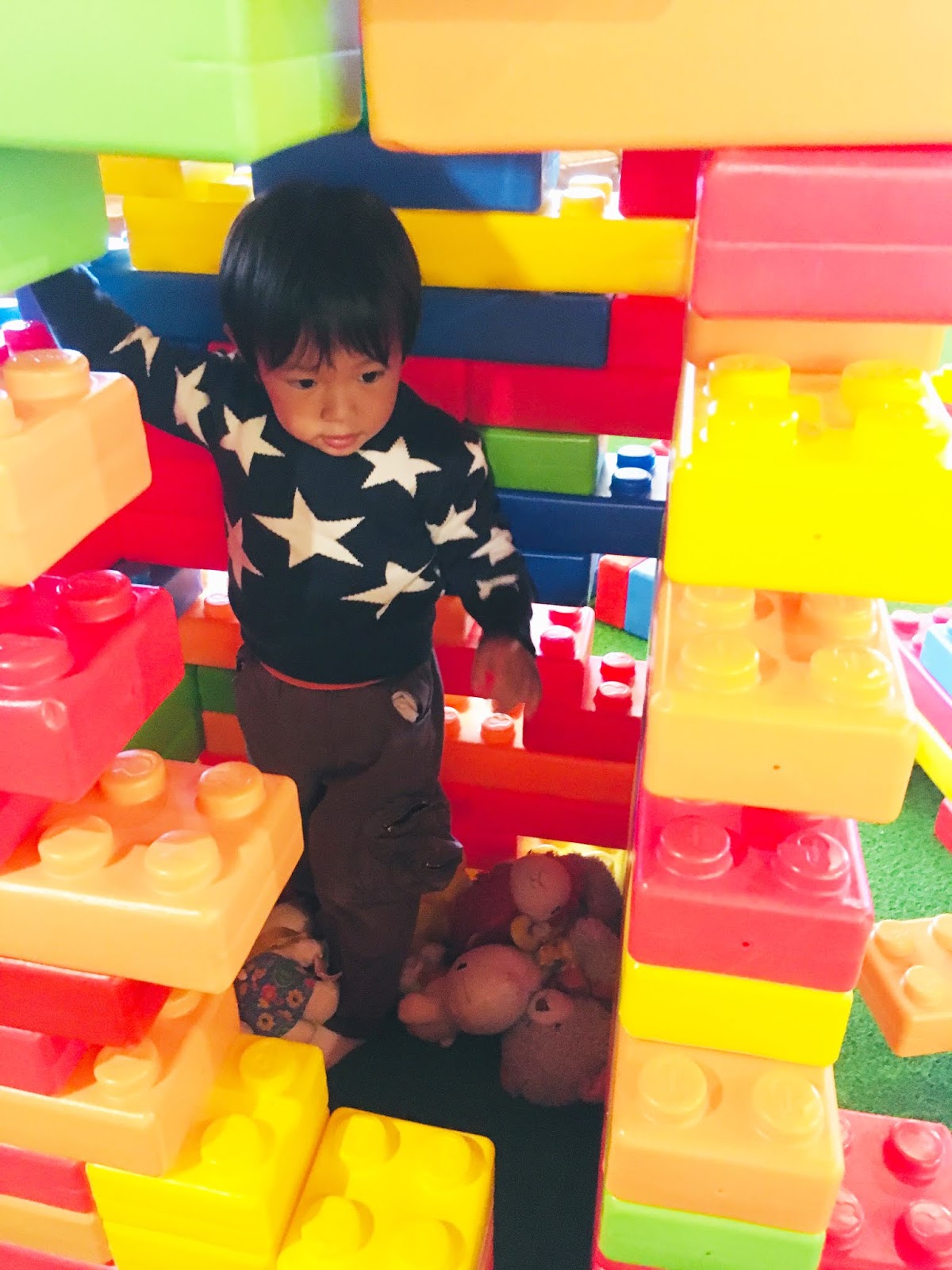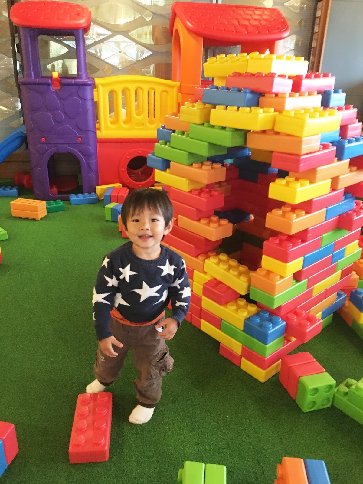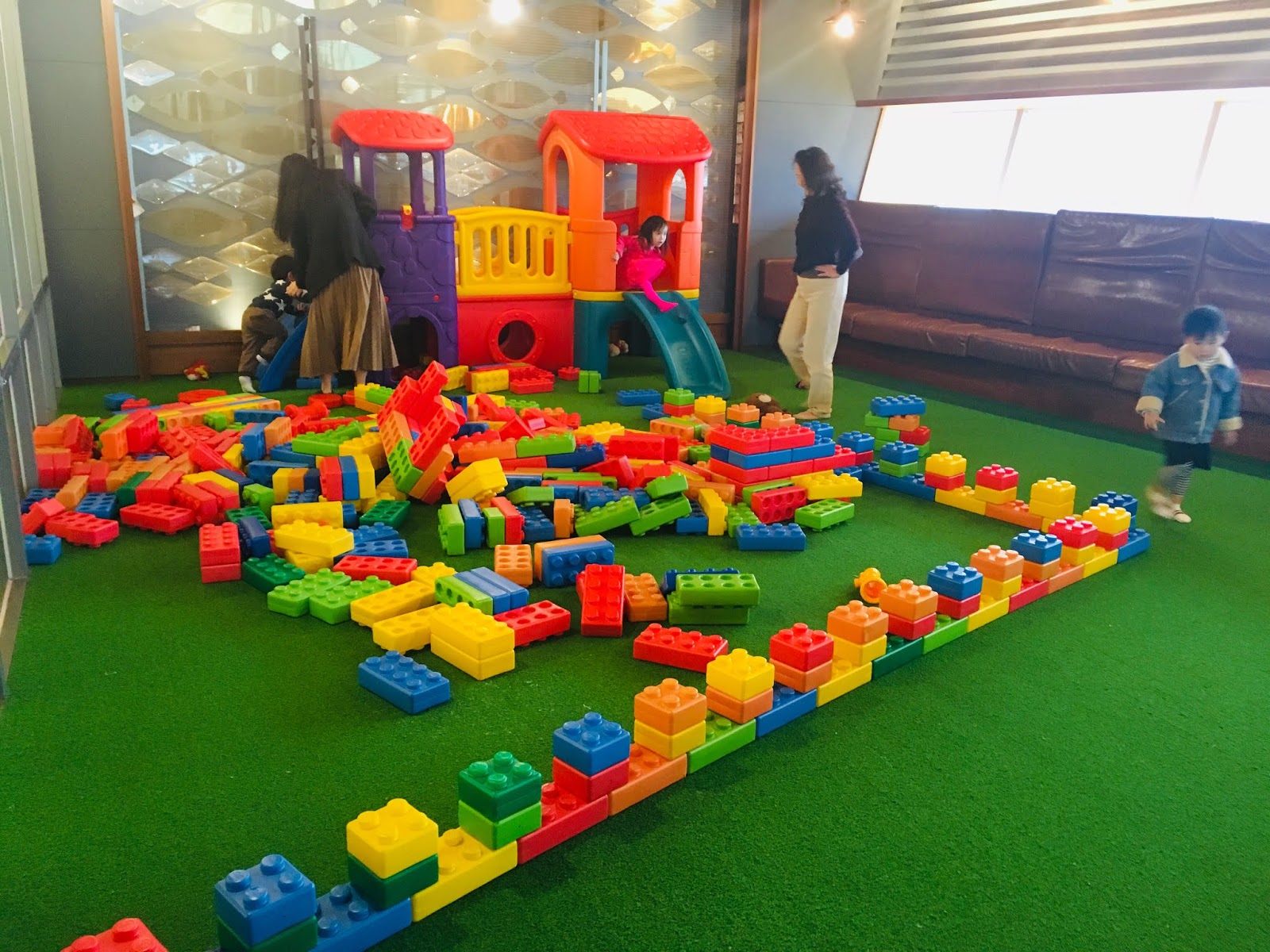 「尼斯灣海洋景觀餐廳」的「兒童遊戲區」空間很大,有數量可觀的大樂高可以堆疊巨大的作品,還有溜滑梯及布娃娃,小福寶在這裡玩得好開心!