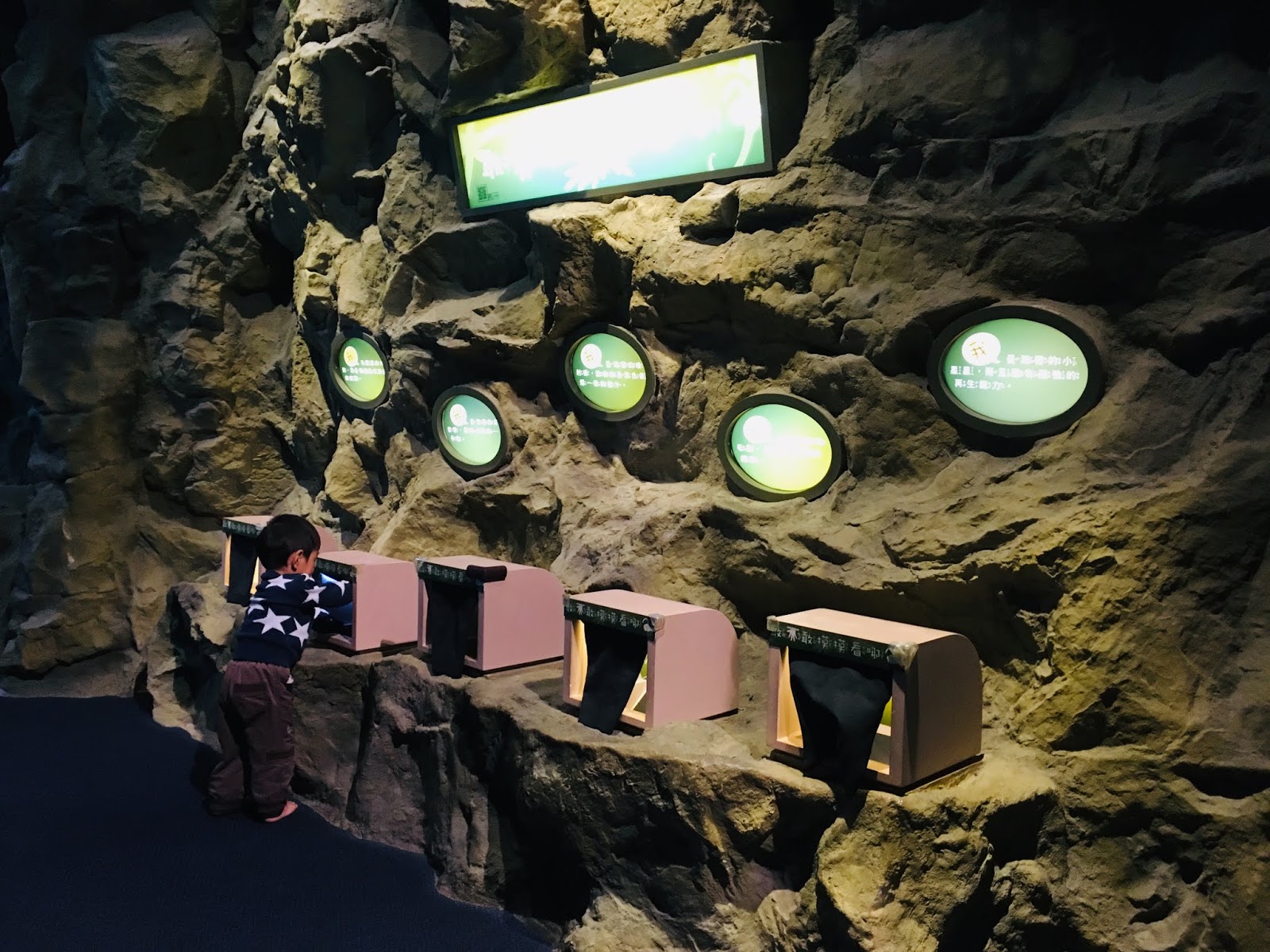 主題館分作1樓、3樓、5樓、7樓的展廳,我們從1樓開始依序看起,才開始逛1樓「深海展示廳」,驚覺仔細看的話,整棟博物館逛一天也逛不完,是可以經常帶小孩來玩的好地方。