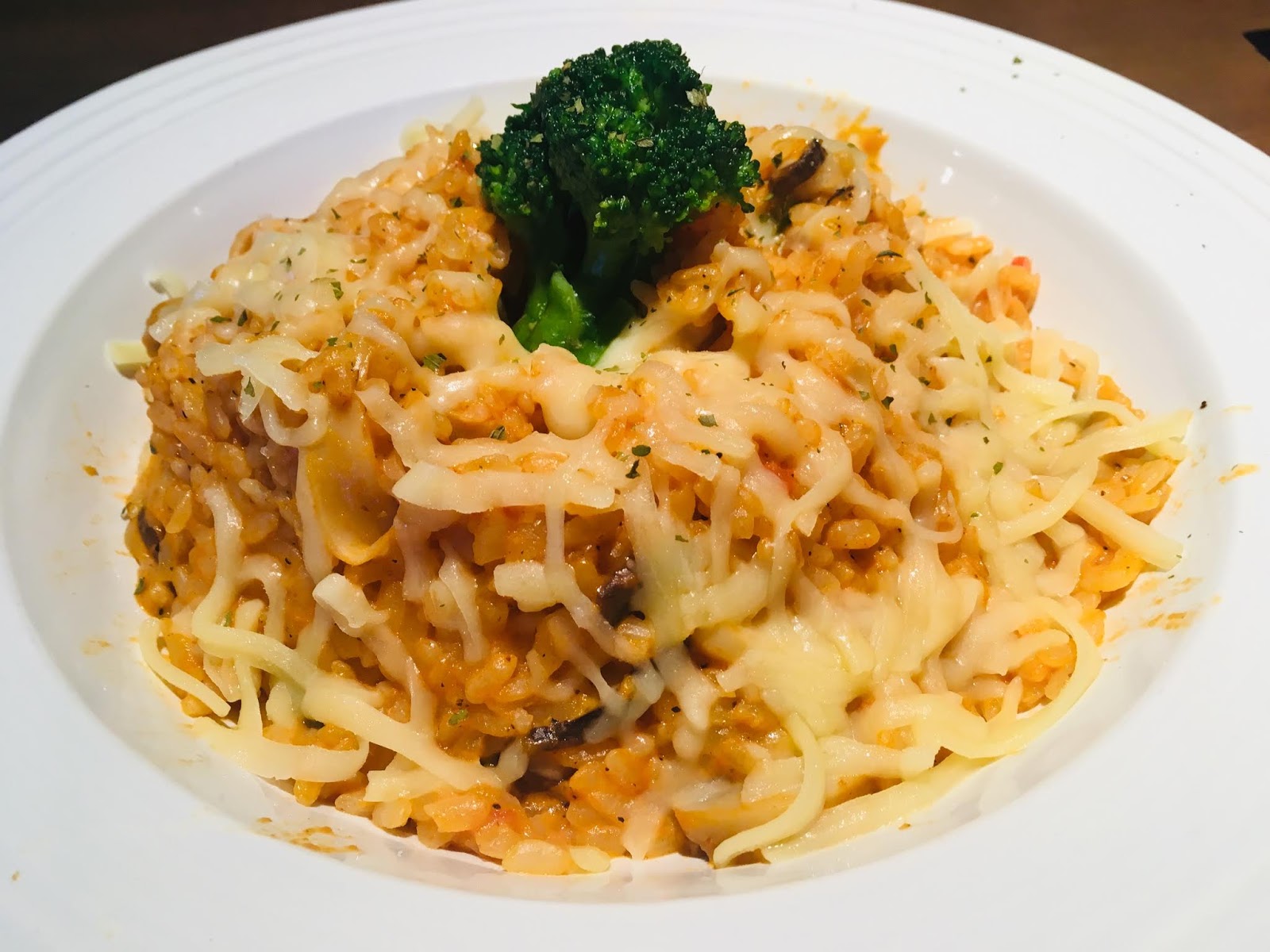 「西西里番茄起司燉飯」是簡單美味的料理,以微微酸甜的番茄和各式蔬菜融入燉飯中,撒上濃郁牽絲的起司,是很開胃又營養的主餐,小福寶很愛吃這道。