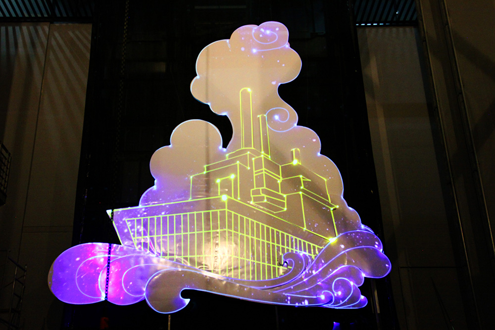 3樓的「深海影像廳」是由日本殖民統治時代的北部火力發電廠鍋爐室改建而成,有一個超大尺寸的投影螢幕,以3D立體光雕秀的方式呈現「北火電廠」的過去、現在和未來,每個整點和30分都有一場,是很絢麗的展演,值得一看。