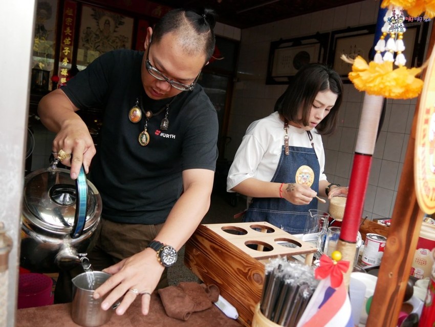 一邊等待的時候,我觀察到老闆夫妻倆在調泰奶。