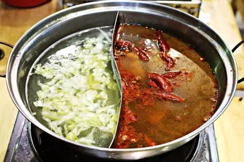 圖|凌雲不小心加錯湯底,兩鍋都變成麻辣鍋,酸菜麻辣層次豐富,頗對味喔。
