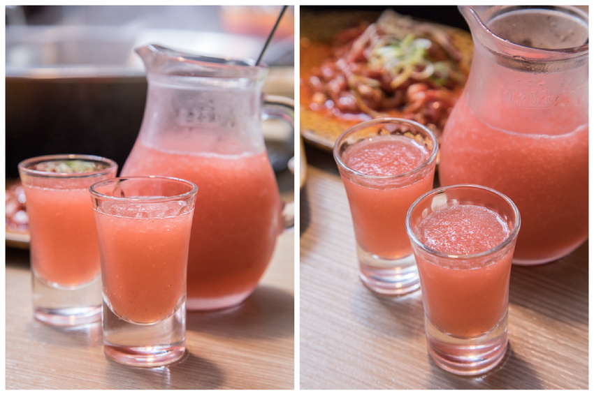 用餐席間服務生還送了了一壺冰涼的梅子冰沙,冰涼酸甜好解膩