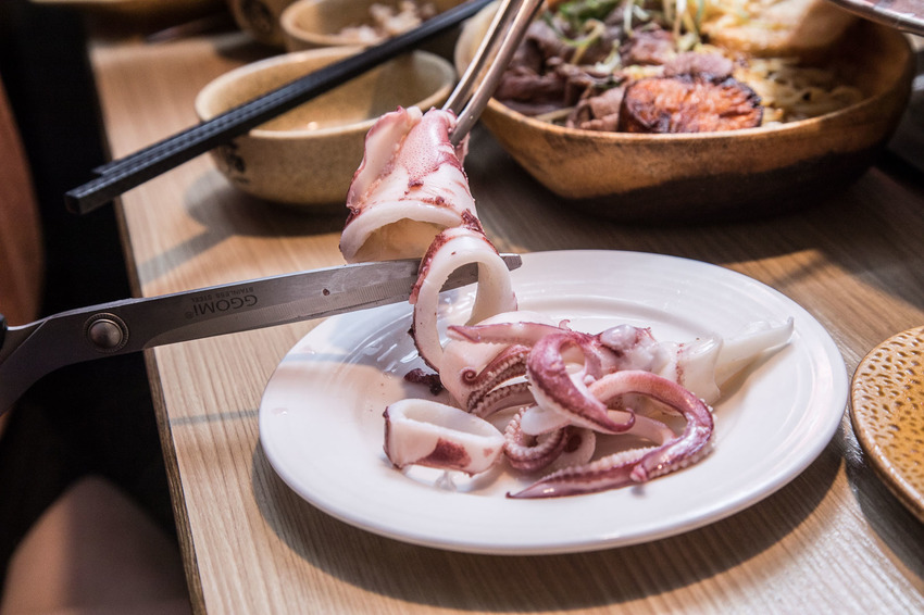 整尾的超大小卷,整尾放下鍋中煮吧,大概小卷肉身轉白就是最佳熟度!四川龍府還有附上料理剪刀,小卷可以用剪刀剪成適口大小很方便,小卷口感彈Q脆甜,肉身也很厚實,咀嚼時有著濃郁的海鮮甜味