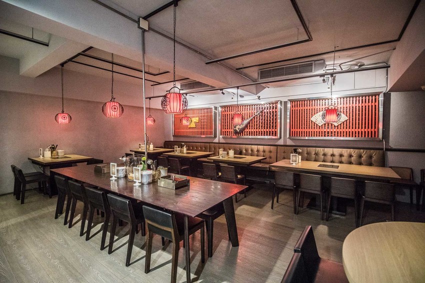 走進四川龍府同樣承襲著與外觀同樣的設計風格,用餐區域分為一樓跟B1,裝潢是以紅黑為主色調,搭配中國風的吊燈,搭配紅色燈光相當貴氣,桌與桌之間也十分寬敞舒適,長形的沙發區還可以容納10人左右的用餐人數,像咬咬今天造訪時就有10人的訂位,大家圍再一起吃火鍋好不熱鬧!