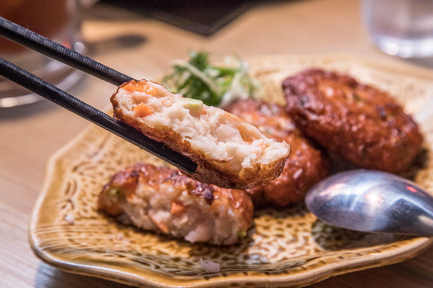 鮮蝦天婦羅本身就是熟食,可以放進鍋裡煮也可以直接吃,還沒來的及下鍋就被我們吃光了,剛上桌熱熱時表面還帶有些許的酥脆口感,裡面的蝦漿吃起來鮮味十足且有彈性,除了蝦漿外還加入了紅蘿蔔、豌豆,多了幾分層次風味