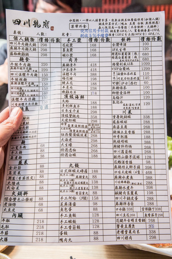 四川龍府的菜單,用餐模式採單點制,點鍋類一律以人頭來計算(鴨血、豆腐、白飯無限量供應),鍋底128元/1人,鴛鴦鍋每桌+150元,如果不想吃麻辣鍋,四川龍府也有一些麵食或是個人鍋可以選擇,價位也蠻親民的,川菜種類超多樣,一時間咬咬也陷入選擇障礙,感覺放掉哪一個都好可惜...