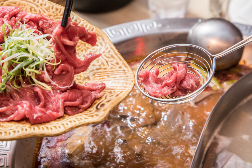 如果想要體驗會升天的麻香辣感,就將麻辣漬牛拿去涮麻辣鍋吧!因為本身辣度就相當強勁,經過涮煮熱度的加持,加上麻辣鍋底本身的辣度,1+1大於2,入口麻辣鮮香,連肉汁滲出時都是麻香十足,不一會工夫就辣得汗如雨下,爽快呀!
