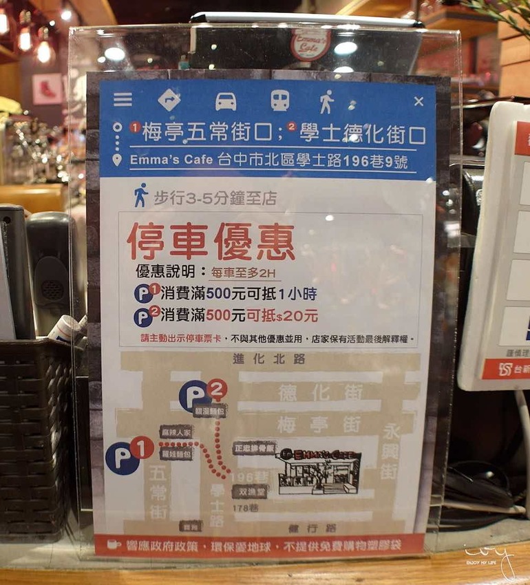 剛才上面有提到停車的資訊,在Emma’s Cafe附近有兩個特約停車場,這兩個不同停車場優惠方式皆不同