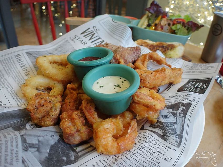 炸物拼盤有6種料,想花枝圈、炸蝦、薯條、唐揚雞塊、雞柳、雞翅,每種的份量都很多,超適合多人一起share分食