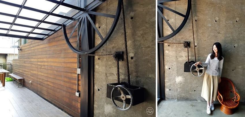 門的開啟方式就是用旁邊的齒輪盤轉動開啟的,可惜現在沒辦法讓旅客轉動,不過為了各為安全著想,我們還是跟他拍張照就好,而且搭配清水模的灰牆也很好拍呀!!