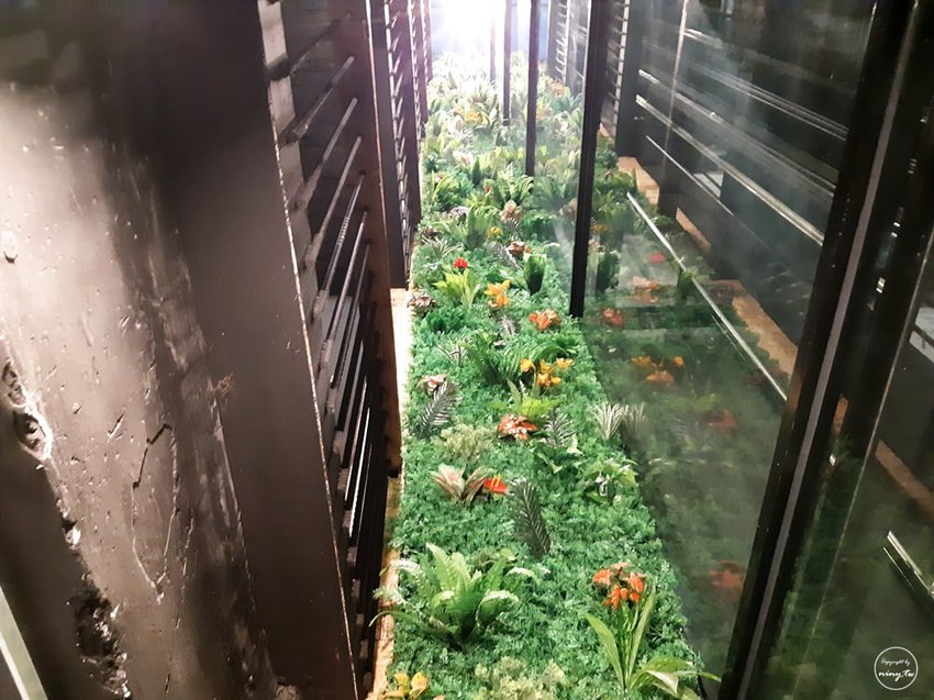 不只走道設計獨特,一樓電梯旁邊也是個適合拍照的好地方,背景就搭配綠意盎然的植物牆,而且這面植物牆可是一直延伸到最頂層樓的呢!!