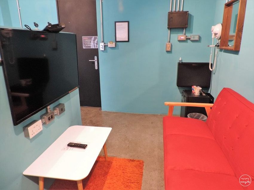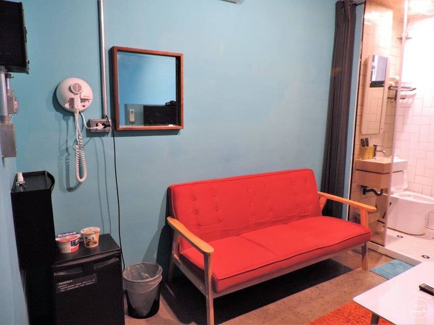 我們住的是D樓層的第8間,剛好分配到小客廳跟床鋪有分隔牆的房型,感覺就像是有著一房一廳的豪華房型,而這個房型也是我預訂黑金文旅的主要原因。後來工作人員說,訂房時如果有先告知想要的房型,只要入住期間有房的話都會先為房客保留起來,也算是很貼心的服務。(點我查詢房價/尚未註冊可使用連結賺取旅遊金)