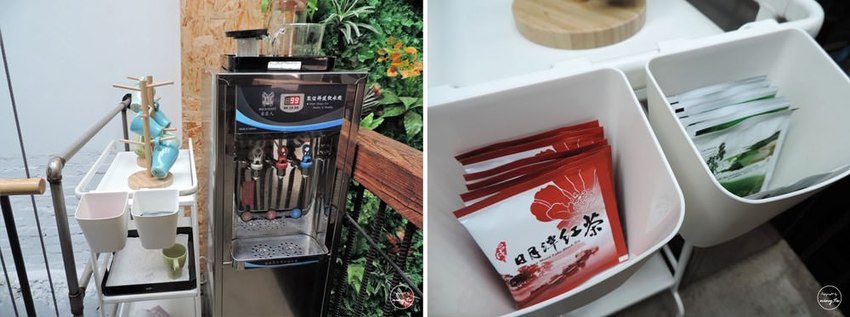 在每一層樓都有放置飲水機,在最高層樓還有放茶包跟馬克杯,可以來這邊泡杯日月潭紅茶,坐在旁邊的大桌享受清閒時光。