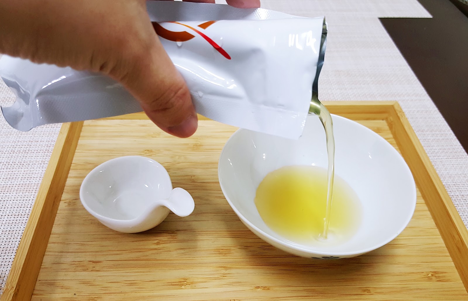 把滴雞精倒進碗裡的時候,濃濃的雞湯香味飄散出來。