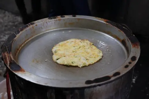 小雞之前買過阿珠姨蛋餅,現場用麵糊煎出來