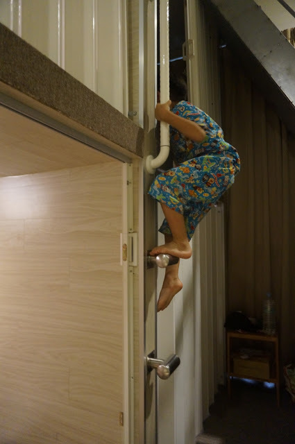 有簡易樓梯可供上下樓,屎蛋調皮的爬上爬下,下不來了~只好等屎蛋爸來解救了,哈哈哈!