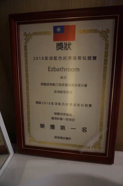 EZbathroom 還參加「澎湖藍色經濟海客松」競賽活動,Ezbthroom的一日完工衛浴以海廢為原料創作,得到第一名,可想而知EZbathroom也是很環保的產品。