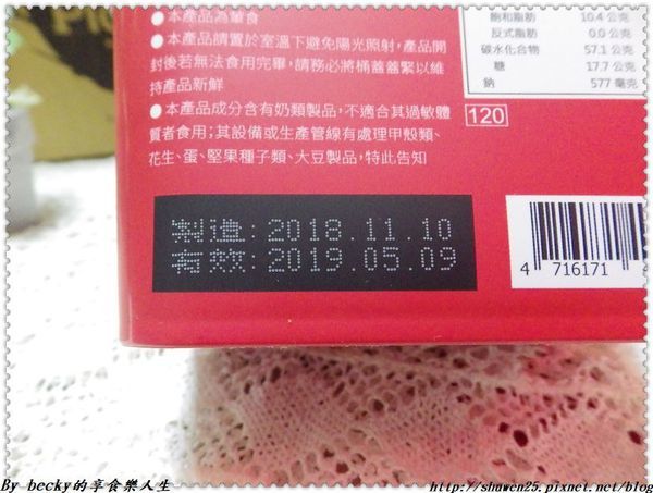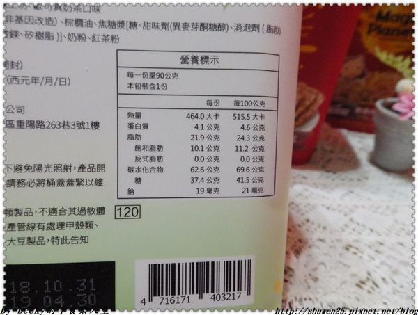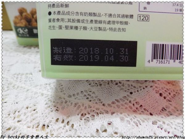 背後一樣有著營養標示、製造日期及有效日期及成份說明。