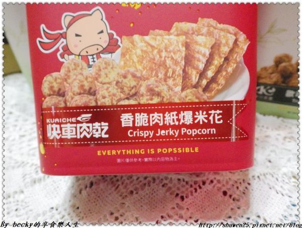 香脆肉紙爆米~紅色的小盒包裝~有著小豬及肉紙圖案,非常清楚。