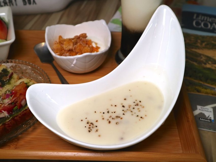 那天喝到的是香濃松露濃湯,可別小看這粉白色濃湯,沒想到裡面融合了超濃郁的松露風味,還能吃到蕈菇的碎丁,讓超愛吃菇的我,喝得好開心~~~(好想跟老闆說:”再來一碗!!!”)