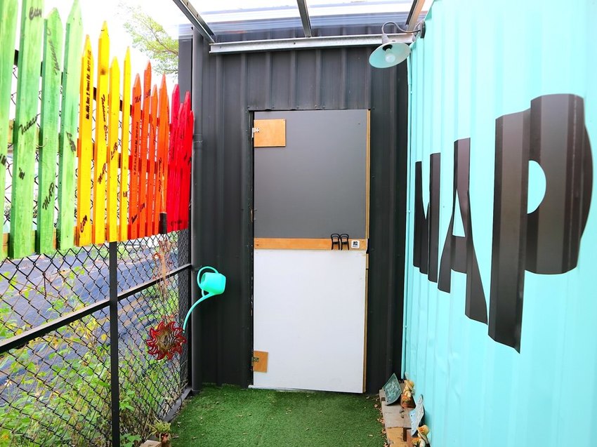 還可看見貨櫃屋的 粉嫩Tiffany藍牆面