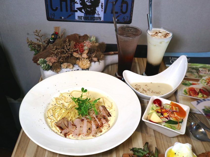 我們選擇了:《香檸奶油白醬義大利麵+香煎松阪豬 (每日限量)》的組合。
