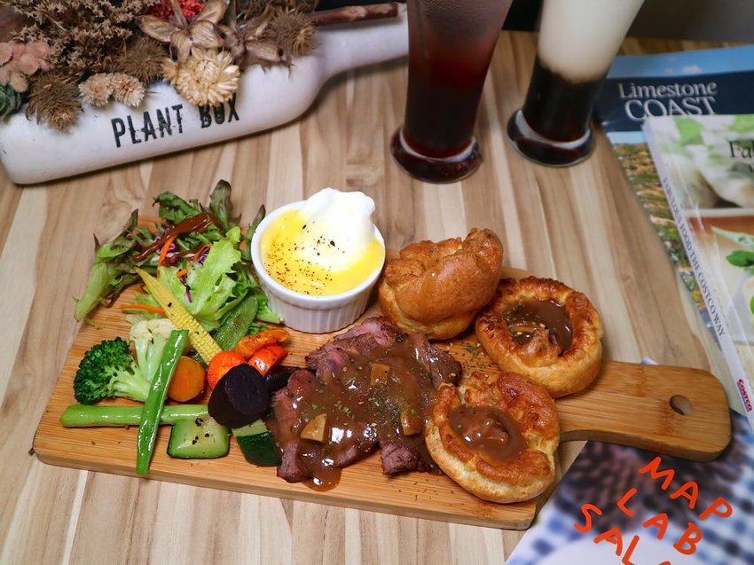 點選這道《英式約克夏布丁》可選擇搭配主餐肉品:《舒肥嫩肩牛排》或《手作手撕豬肉》。