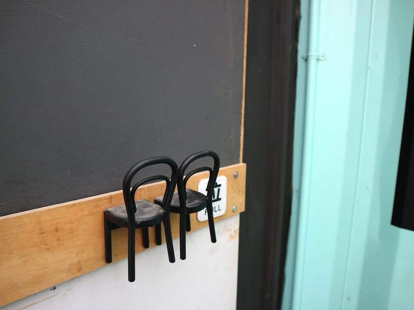 ▼可愛的迷你椅子被固定在門板上,搖身一變為造型門把: