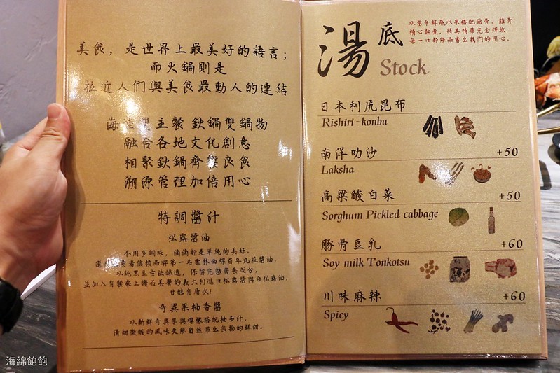 搭配西班牙伊比利豬(+400元),麻辣湯底(+60元)