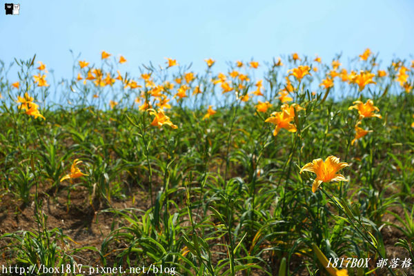 藍天配上白雲,金黃色的金針花隨風搖曳,上萬朵金針花佈滿山頭,吸引旅人們駐足觀賞。