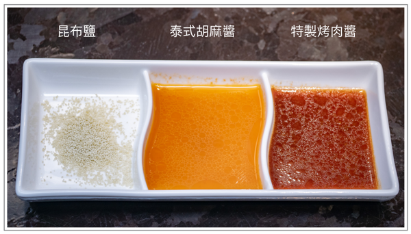 另外,還有泰式胡麻沾醬和特製的烤肉醬