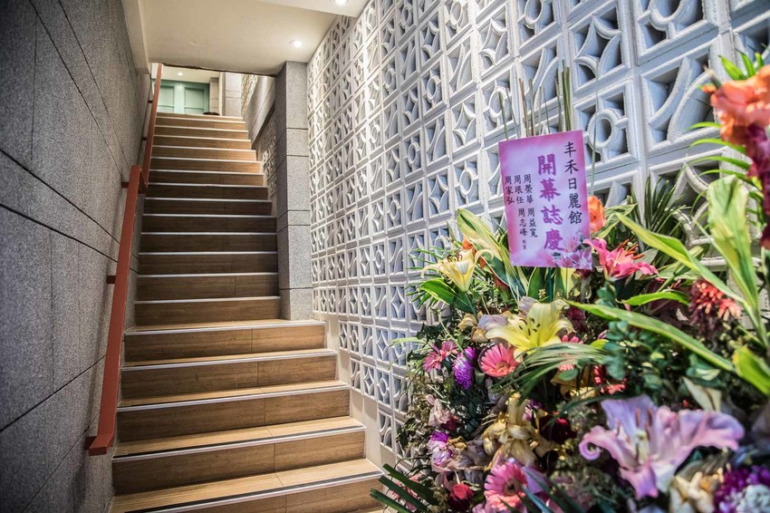 丰禾日麗台式小館首發店就位在北捷松江南京站五號出口一分鐘處,從7-11旁邊的樓梯上去二樓,從外觀看起來就充滿濃濃的台灣味,牆面上用花磚裝飾,身在周邊都是大樓的水泥叢林中格外凸顯懷舊的味道