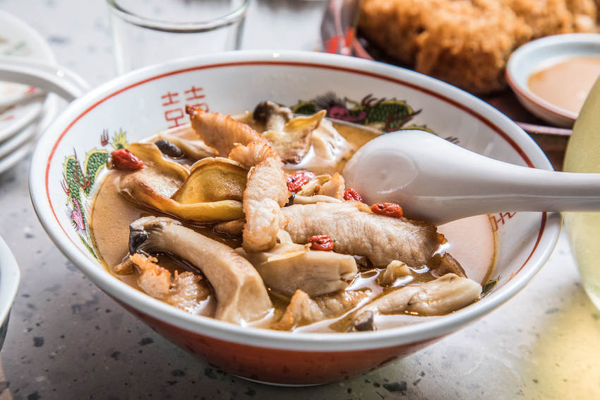 因為使用茶油料理,湯喝起來完全不會油膩,主廚還加入菇類同煮,讓湯頭喝起來更加鮮甜好喝