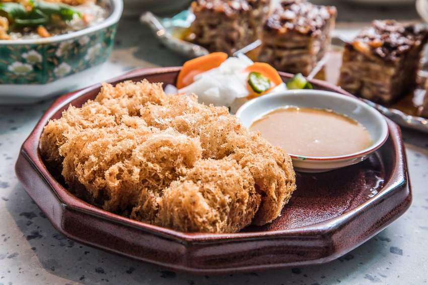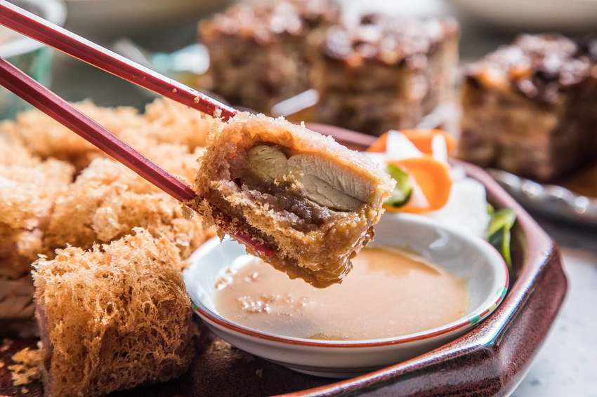 綿密的芋泥和鮮嫩雞腿肉完全融為一體,芋泥綿密雞肉軟嫩,再加上外層炸得香酥的麵衣,口感豐富有趣,沾上特製醬汁更添味覺層次感