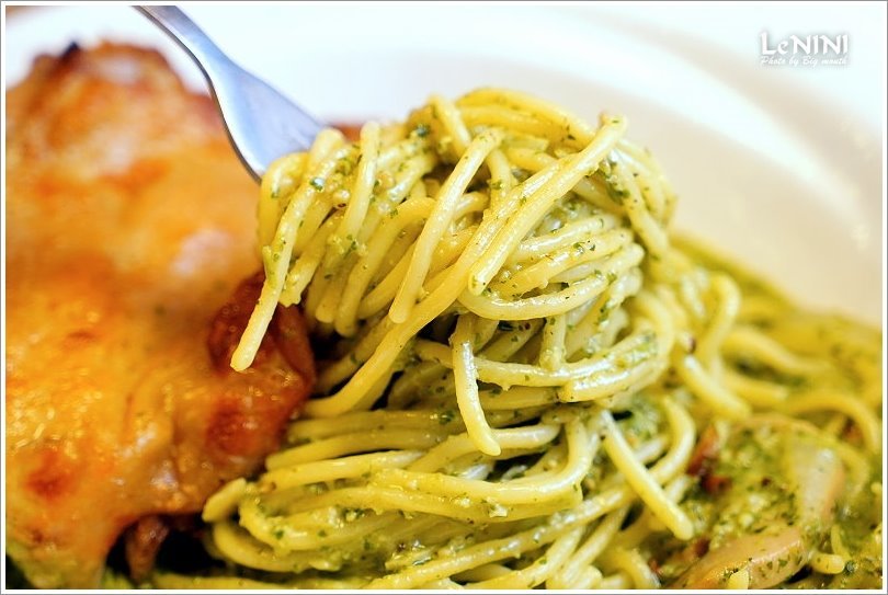 ▼他們的青醬濃度調得剛剛好,不僅剛好可以緊緊巴附在麵條上,而且也不會過乾過膩!